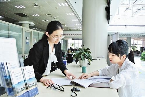 6月24日,沧州市行政审批局企业开办专区工作人员(左)指导一家公司相关负责人办理股权变更业务。河北日报记者 王雅楠 摄