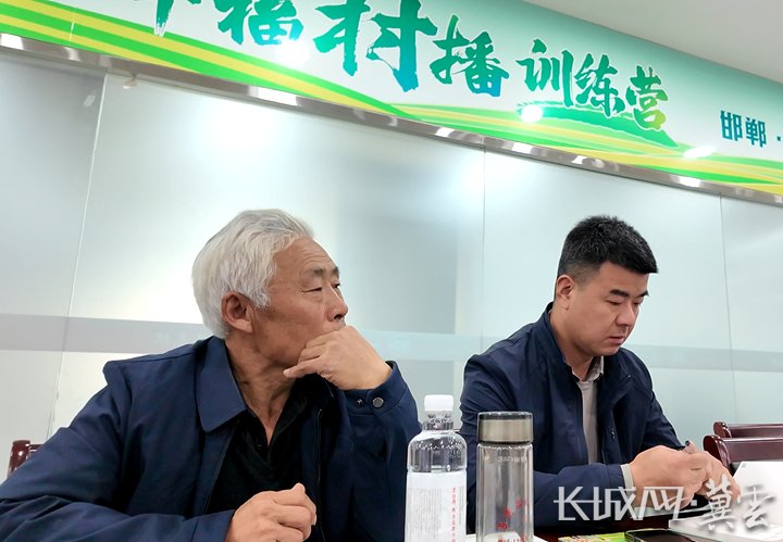 邯郸魏县仕望集镇仕北村村支书路风和他的搭档李占周正在“幸福村播训练营·邯郸站”学习。长城网·冀云客户端记者 高航 摄