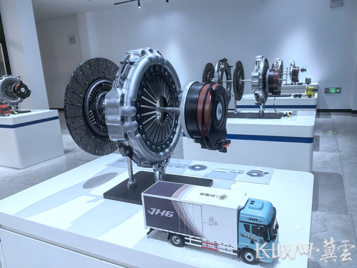 崔芹芹指向另一款产品,眼神中透着自豪:“这是AMT双片自调节离合器,带自调整功能。从动盘磨损后能自动补偿,始终保持最佳状态。”这个看似简单的圆盘,却是传递发动机动力的关键,其性能直接决定卡车的动力输出是否柔顺、可靠。
