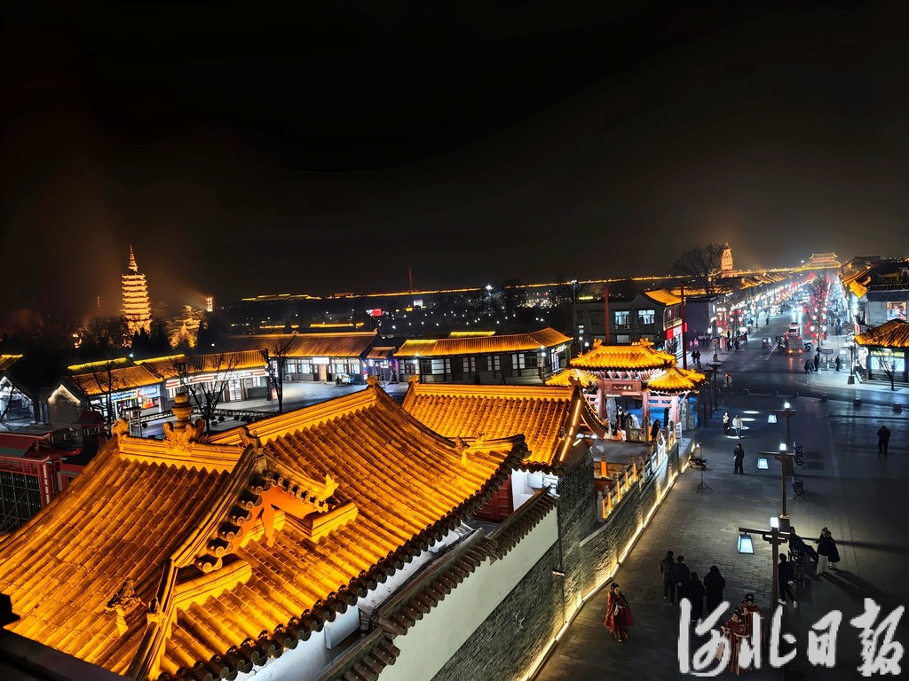 1月24日,华灯初上,正定古城灯光璀璨,游人络绎不绝。河北日报记者 刘萍 摄